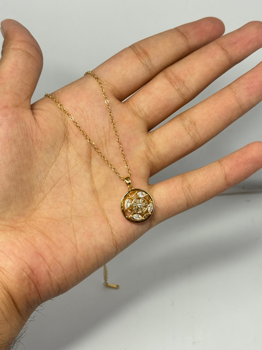 Elegant Gold-Plated Round Pendant with Floral Diamond Design