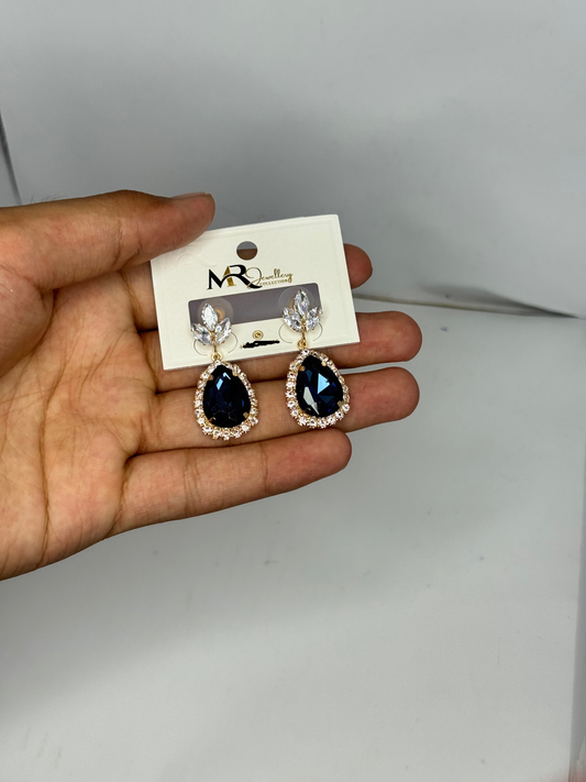 Navy Blue Teardrop Crystal Earrings – Elegant Gold-Tone Dangle Earrings for Women