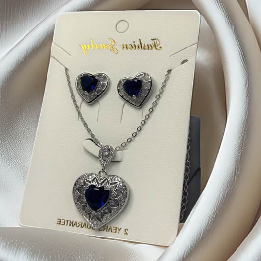 Heart-Shaped Blue Crystal Necklace & Earring Set – Fashion Jewelry