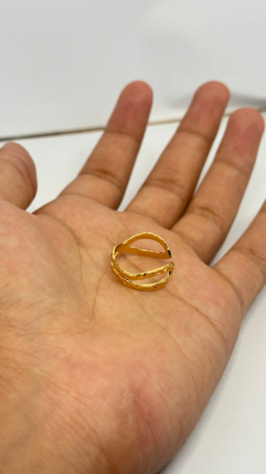 Elegant Gold-Plated Adjustable Open Ring – Minimalist Textured Design