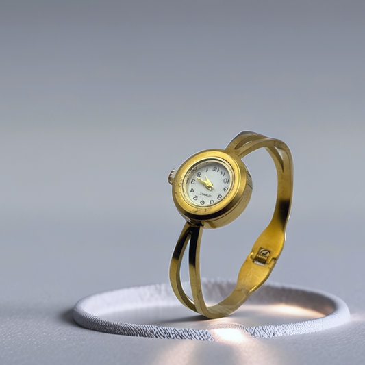 Elegant Gold-Tone Quartz Bangle Watch for Women – Bracelet Style