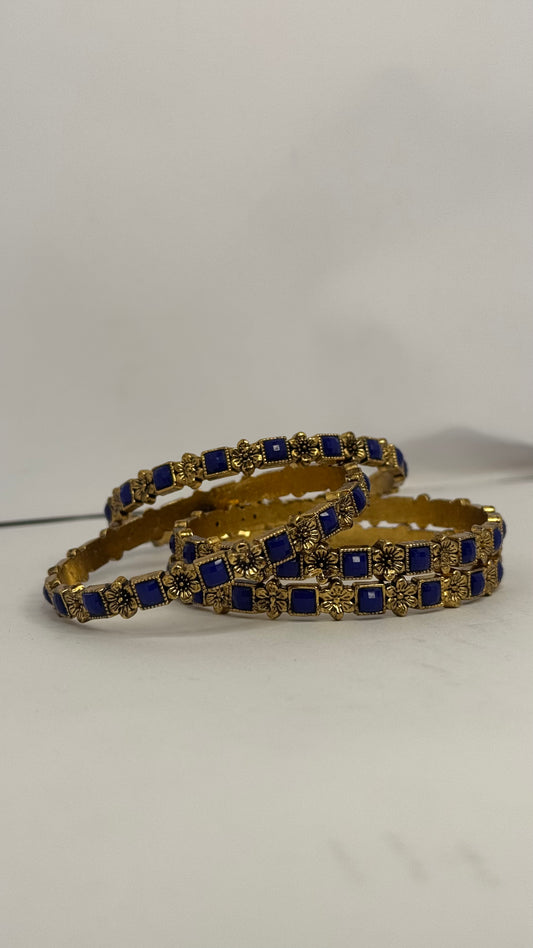 Royal Blue & Gold Floral Bangles – Set of 4