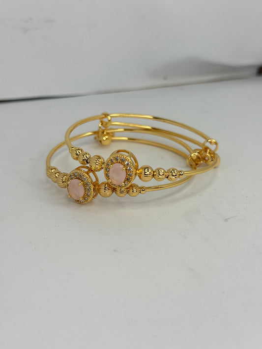 Gold Plated Pink Stone Bangles – Elegant Oval Design (Set of 2)