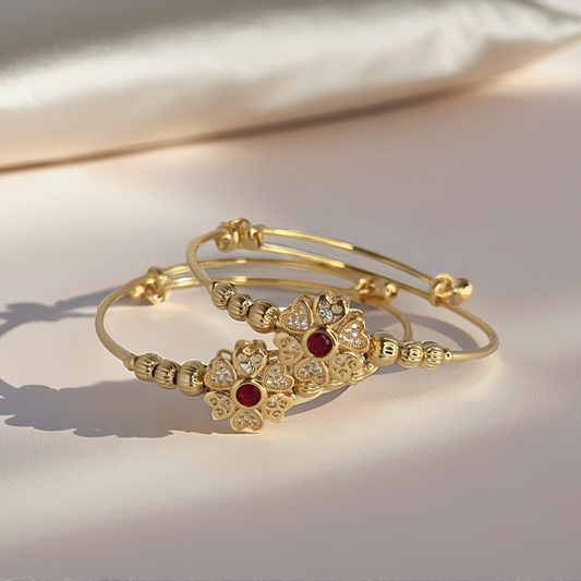 Elegant Red Stone Gold Bangles – Set of 2