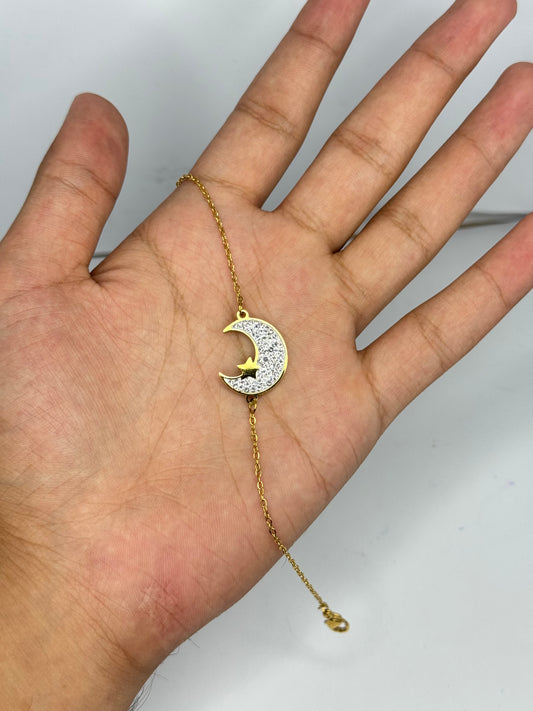 Celestial Moon & Bird Bracelet – Gold & Crystal