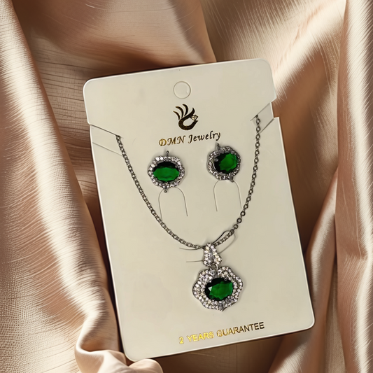 Elegant Green Crystal Jewelry Set for Women – Necklace & Earrings