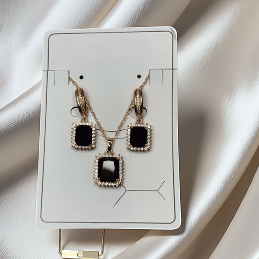 Black Elegance Square-Cut Jewelry Set – Necklace & Earrings