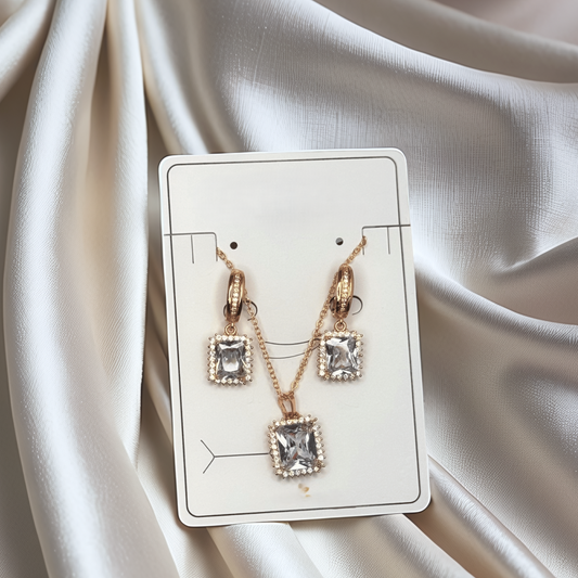 Royal Square-Cut Zirconia Jewelry Set – Necklace & Earrings | Gold Finish