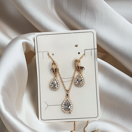 Elegant Teardrop Zirconia Jewelry Set – Necklace & Earrings | Gold Finish